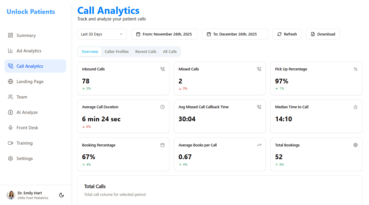 The level of transparency Unlock Patients provides is something I haven’t found anywhere else. Before working with Alex, I never knew which marketing dollars were actually turning into appointments. Now, with their proprietary dashboard and AI call analysis, I can see exactly how many children were booked from every campaign in real-time. Their platform is fully HIPAA-compliant, which gave me total peace of mind from day one. We’ve seen a significant ROI, and for the first time, our marketing feels like a data-driven investment rather than an expense. For any pediatric practice looking to scale with precision, Unlock Patients is the gold standard.